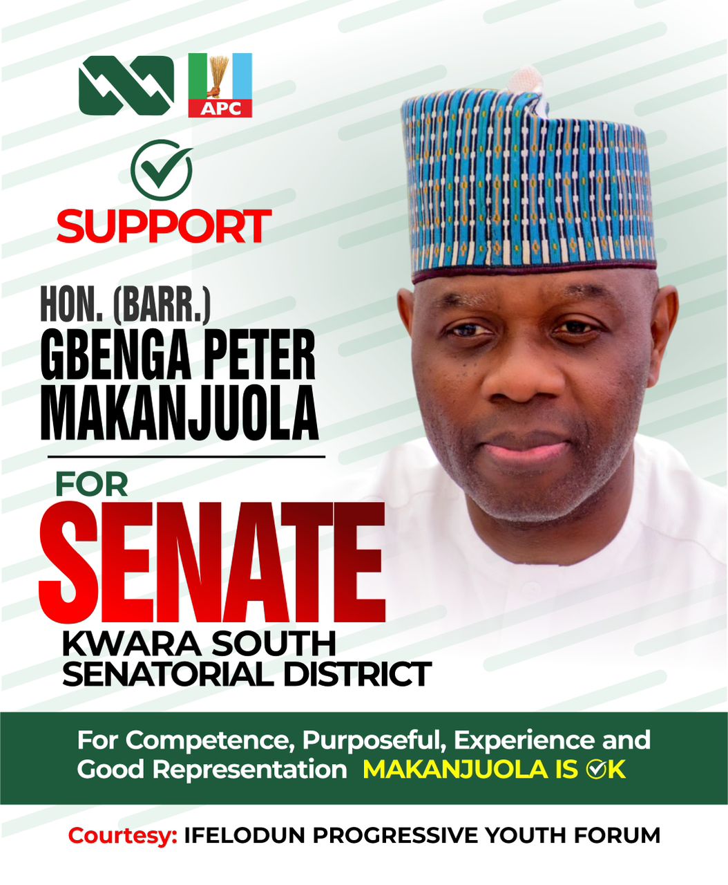 The Ifelodun Progressive Youth Forum (IPYF) has declared its total support for the senatorial ambition of Hon. Gbenga Peter Makanjuola under the platform of the All Progressives Congress (APC), describing him as a capable and experienced leader with a proven track record of service.